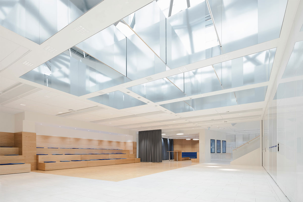 Im Empfangsbereich und Showroom ist die Markenwelt von Kuraray erlebbar.