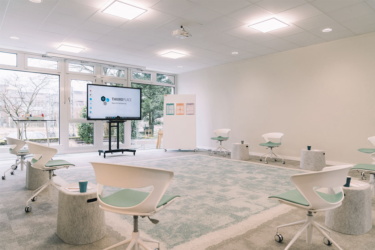 Der THIIIRD PLACE bietet einen Ort, unsere Arbeitsumgebung und Methoden auszuprobieren und zu erleben. Davon profitieren unsere Kunden aber auch Unternehmen, die auf der Suche nach einer inspirierenden Meeting-Location sind. Auf 300 qm unterstützen unterschiedliche Räume und Settings mit bester technischer Ausstattung und flexibler Möblierung agile Methoden und frische Gedanken für wirkungsvolle Veranstaltungen. Eine inspirierende Gestaltung und leidenschaftliche Gastgeberinnen sorgen für Wohlfühlatmosphäre.