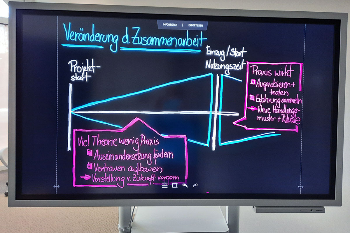 Wir begleiten Transformationsprozesse co-kreativ und partizipativ. Das wirksame Orchestrieren und Umsetzen vielfältiger Formate für Projektkommunikation und Change-Begleitung ist eine unserer Kernkompetenzen.